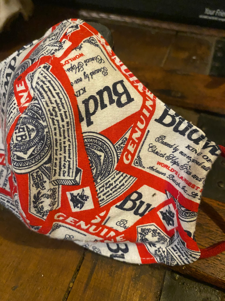 Get through these trying times with a little help from Bud..in your face. 😷 Limited edition Budweiser face mask made proudly in the USA 🇺🇸 Made of 100% breathable cotton T shirt that stretches just enough to lay perfect on the face. Made with filter pocket for removable HEPA filter (included) for easy washing. Sewn-in nose guard that sits comfortably in place and bends perfectly to bridge of nose, crating a tight form fitted cover. Soft cotton ear strap loops that adjust with bead for a secure custom fit. Ear loops can also be switched out with any soft elastic ties approximately 24”long) that can be fed through sides for back of head fit. Paper masks are soooo 2 weeks ago. Protect yourself and others while looking rad and...fab!