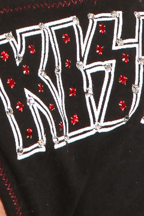 Life’s such a treat, it’s time you taste it…Lick it up, Lick it up... You will definitely get a better taste wearing this bad-ass Kiss inspired Teekini… Velvet white/black leopard tie-sides with Betty’s classic triangle top, low rise front with Brazilian back (as shown) or fuller back. Stitched in red and lined in red. Embellished with over 110 Swarovski® crystals and stamped with it’s very own limited edition number.